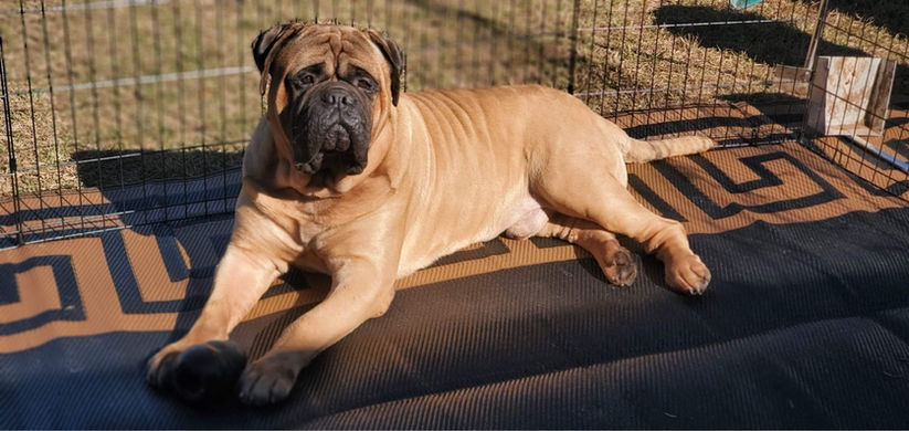 150 lbs 27 inches tall 35 inch head, OFA Excellent hips, good elbows, normal thyroid. AKC GRANDCHAMPION. ALSO CGC CGCA TITLED
